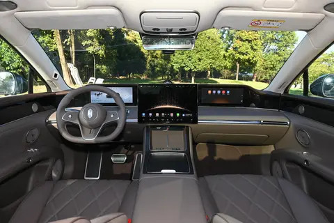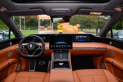 进入到车内,新车前排采用全新寰宇座舱设计,搭载16.1英寸中控屏+12.3英寸液晶仪表盘+12.3英寸副驾娱乐屏的组合,车机内置鸿蒙智能座舱4.0,并会配备小艺智慧助手。配色方面,各种命名的颜色共4种选择。