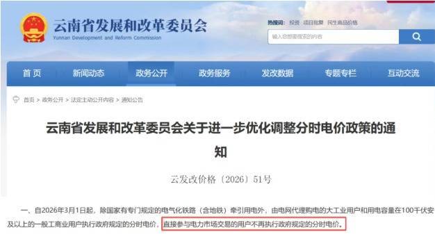 2025年12月17日,国家发展和改革委、国家能源局印发《电力中长期市场基本规则》,明确自2026年3月1日起,直接参与市场交易的经营主体,不再人为规定分时电价水平和时段。